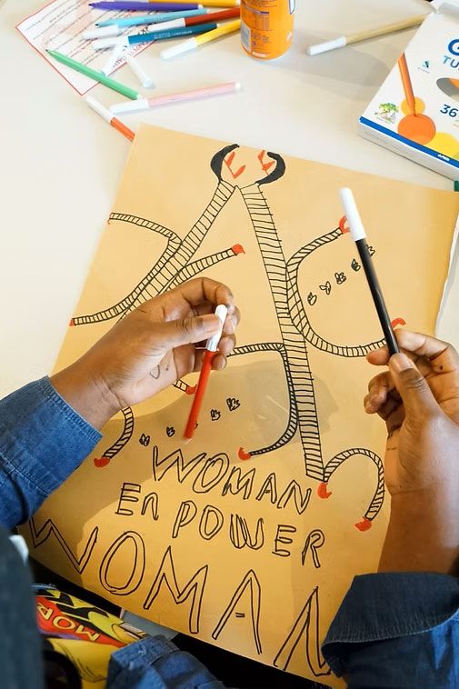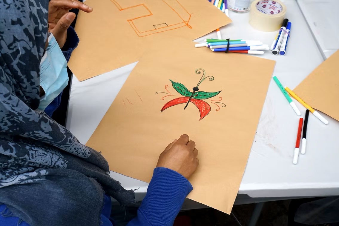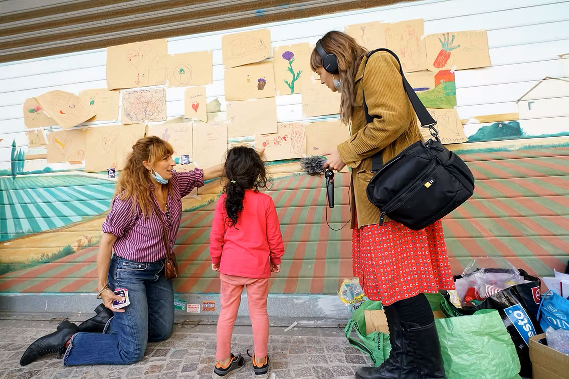 Abbiamo coinvolto con auto-narrazione e disegno le donne del centro anti violenza Differenza Donna e la comunità di bambini rom che vengono a giocare in piazzetta delle Arti.