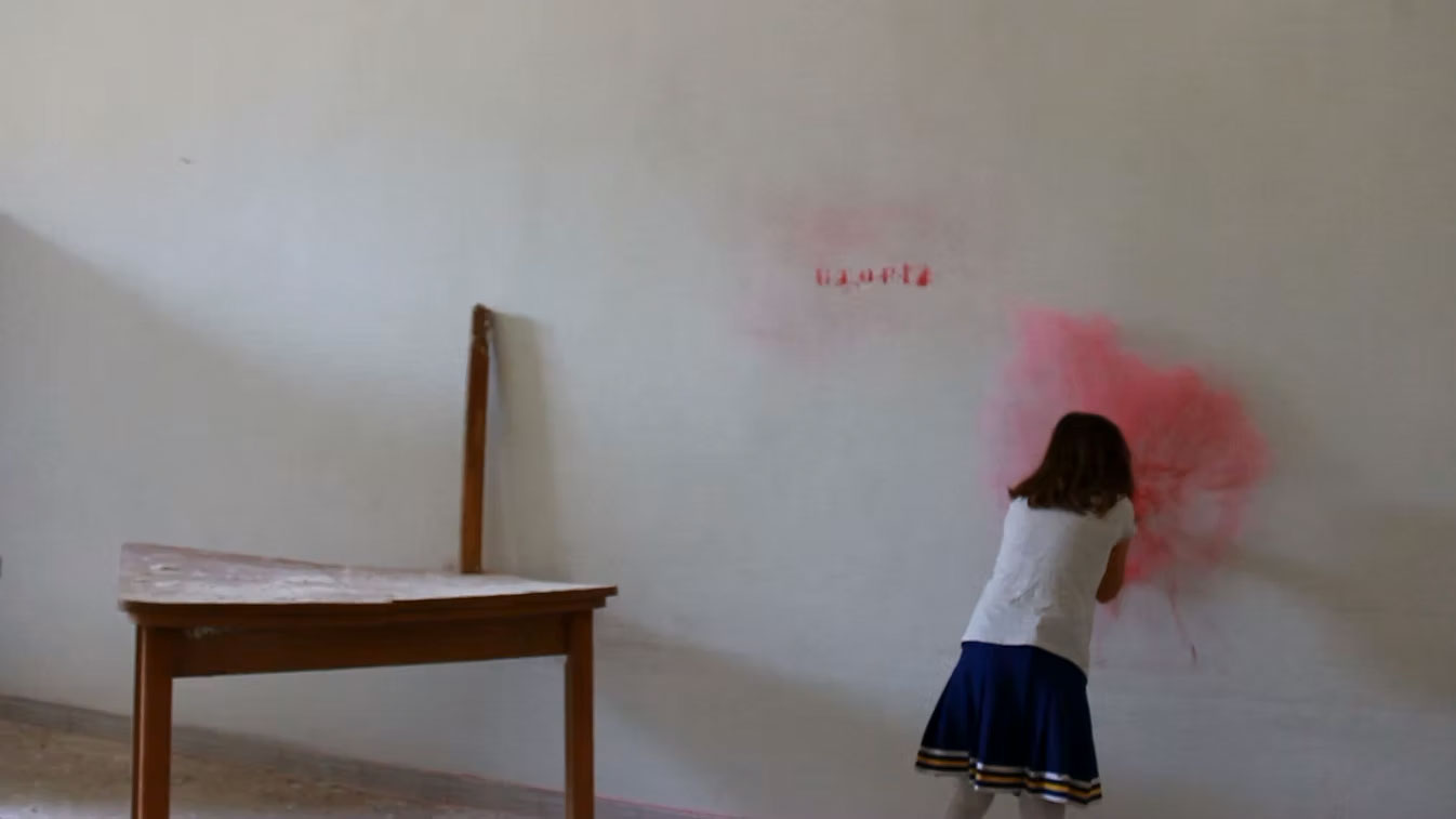 Come in un gioco l’artista e la figlia Anita, riabitano gli spazi per raccontarli e farli rivivere con il loro passaggio.